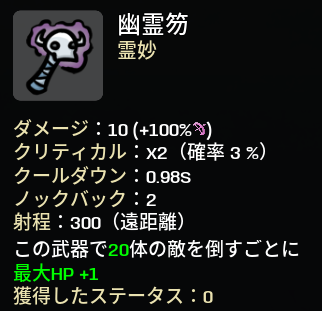 レベルアップ時のアップグレードやアイテムでの強化もそうなんですが、このゲームでは基本的に遠距離ダメージの倍数分近距離ダメージが上がります。