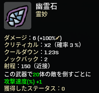 取得アイテムに対してHPと攻撃速度が異常な上がり方をしているのがわかるかと思います。