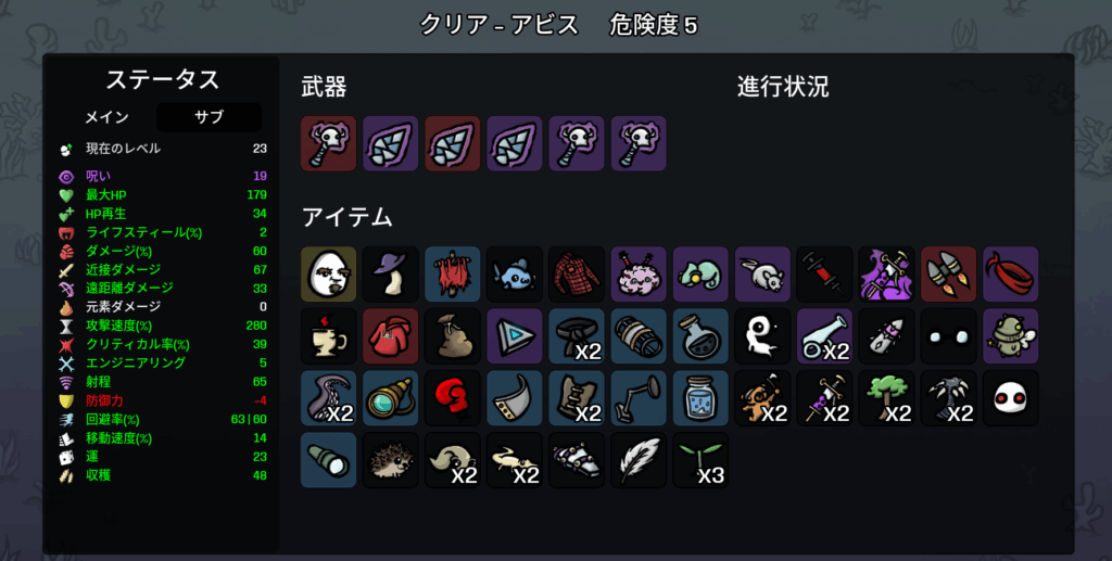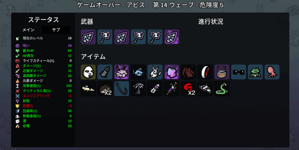 ボス自体も結構サクッと倒せたので、この状況でクリティカルもっと積めていたらもっと強かったのにと思えるプレイになりました。